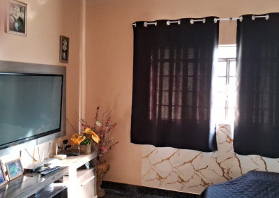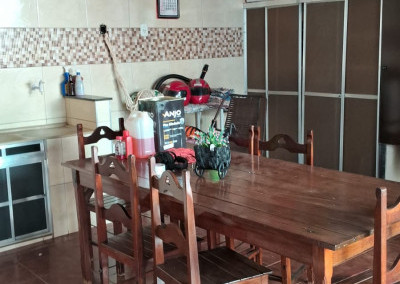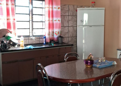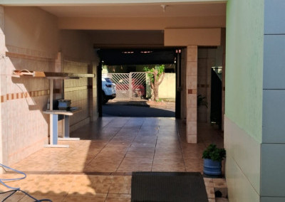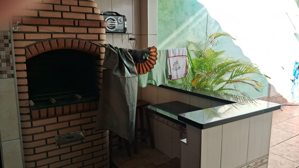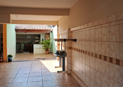 São 3 quartos, sala, cozinha, churrasqueira, lavanderia, despensa e garagem. Tudo muito bem arrumadinho.